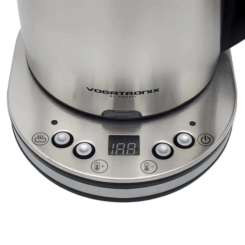 VOGATRONIX(VOGATI) TEA MAKER VE-199 چای ساز وگاترونیکس( وگاتی) دارای بدنه استیل ضد زنگ و با کیفیت است شامل یک کتری 1.8 لیتر و قوری شیشه ای1.0 لیتری است که هرکدام در جداگانه دارند و برخلاف بسیاری از مدلها با یک در ارائه نمیشوند. قوری همراه به فیلتر ضد جرم نیز مجهز شده که براحتی قابل شست و شو است.