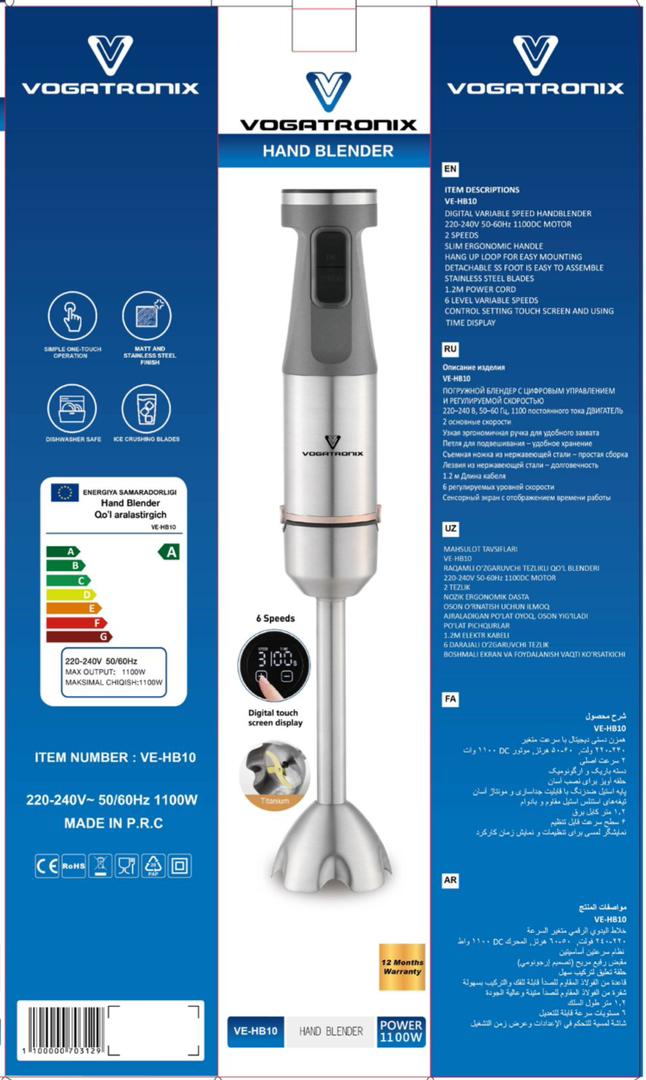 گوشت کوب برقی وگاترونیکس VE-HB10 | خرید هند بلندر ۱۱۰۰ وات با تنظیم سرعت
